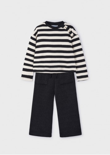 * 3-9 Yaş Kız Çocuk Mayoral Çizgili Triko Takım - Siyah