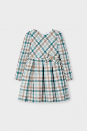 * 3-9 Yaş Kız Çocuk Mayoral Ekoseli Parlak Elbise -Mint