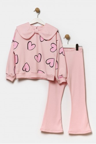 4-7 Yaş Love Fiyonk Kız Çocuk Taytlı Takım -Pembe