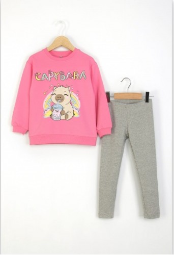 * 4-9 Yaş Kız Çocuk Capy Bara Taytlı Takım - Fuşya