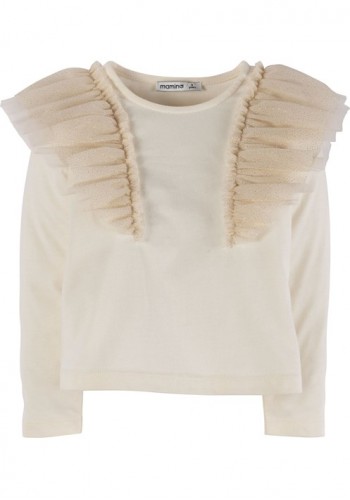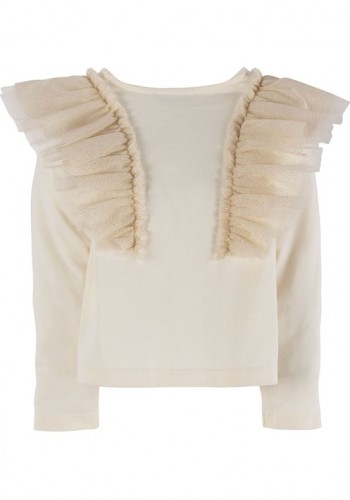 Kız bebek yüzde yüz pamuklu, simli tül fırfır detaylı bluz