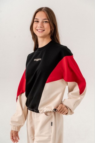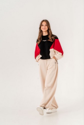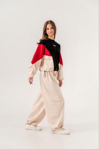 * 9-15 Yaş Kız Çocuk Blok Eşofman Takım - Bej
