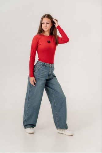 Kız çocuk yüzksek bel bol paça jean pantolon