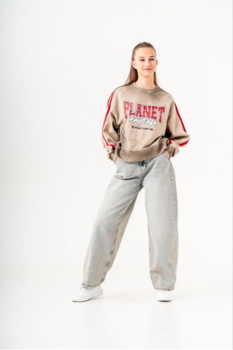 Kız çocuk yüzksek bel bol paça jean pantolon