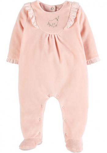 .0-6 Ay Kız Bebek İdilbaby Nakışlı Kadife Tulum - Pembe