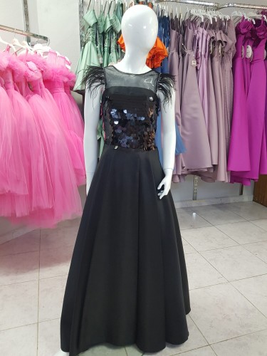 Kız çocuk üzeri payet işlemeli, altı saten tafta abiye