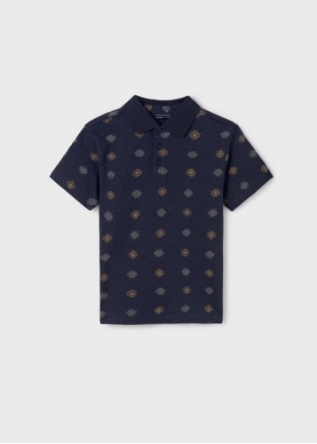 10-16 Yaş Erkek Çocuk Mayoral Polo Yaka Desenli Tshirt - Lacivert