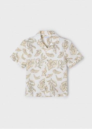 - 3-9 Yaş Erkek Çocuk Desenli Gömlek - Bej