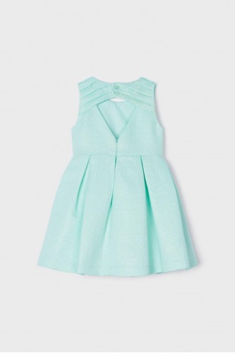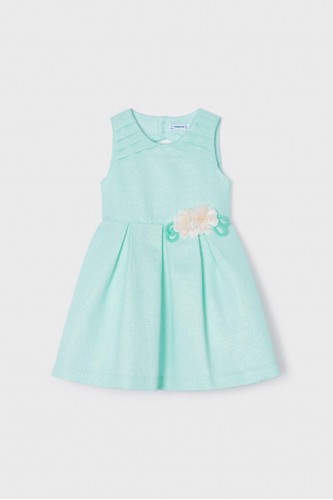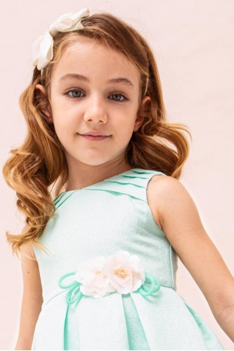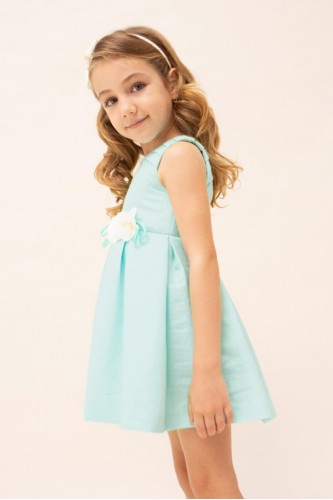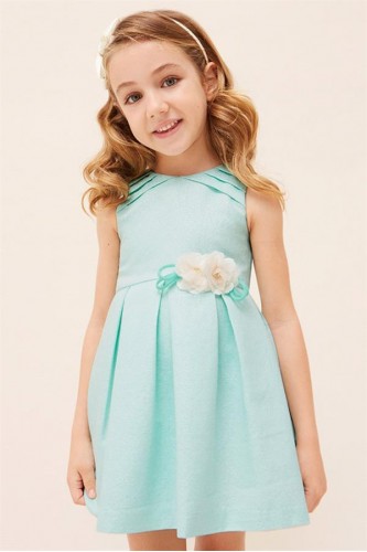 3-9 Yaş Kız Çocuk Çiçek Aplikeli Elbise Mavi