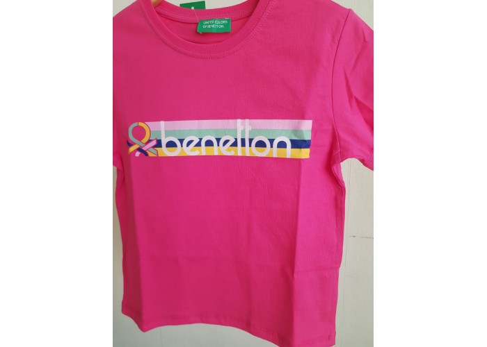 - 4-14 Yaş Kız Çocuk Benetton Yazı Baskılı Tshirt - Fuşya