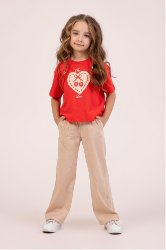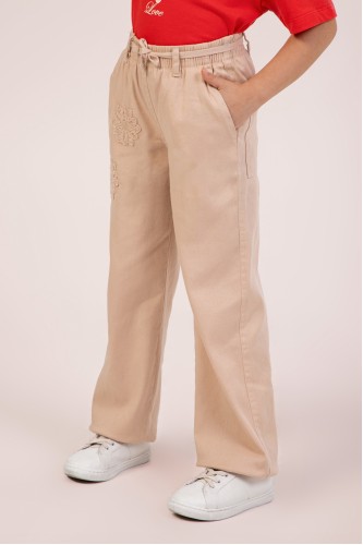 - 4-9 Yaş Kız Çocuk İşlemeli Pantolon - Bej