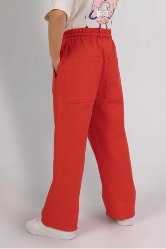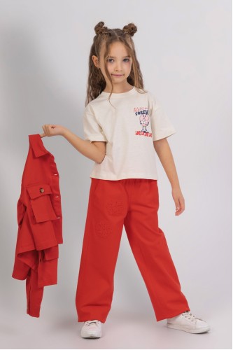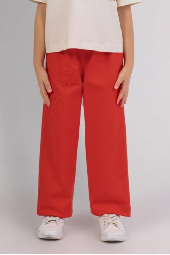- 4-9 Yaş Kız Çocuk İşlemeli Pantolon - Kırmızı