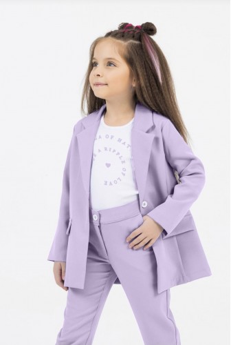 - 4-9 Yaş Kız Çocuk 3'lü Blazer Takım - Lila