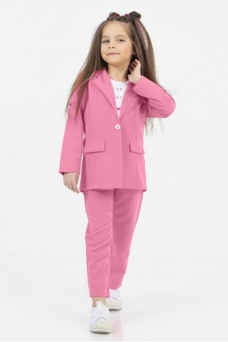 4-9 Yaş Kız Çocuk 3'lü Blazer Takım - Pembe