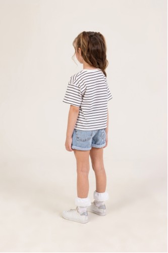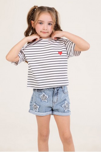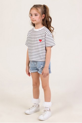 Yüzde yüz pamuklu, kalp baskılı çizgili tshirt