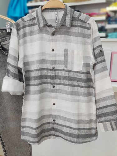 • - 5-15 Yaş Erkek Çocuk Keten Çizgili Gömlek