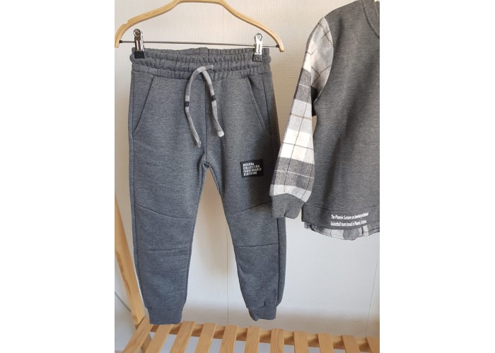 * 5-16 Yaş Erkek Çocuk Ekose Detaylı Eşofman Takımı - Gri