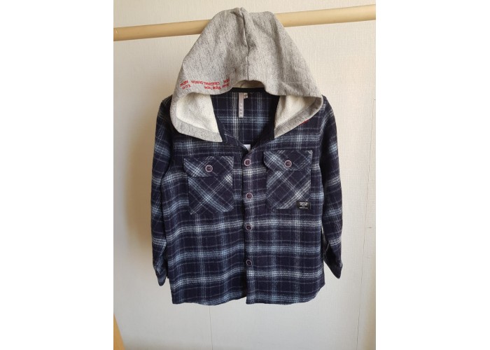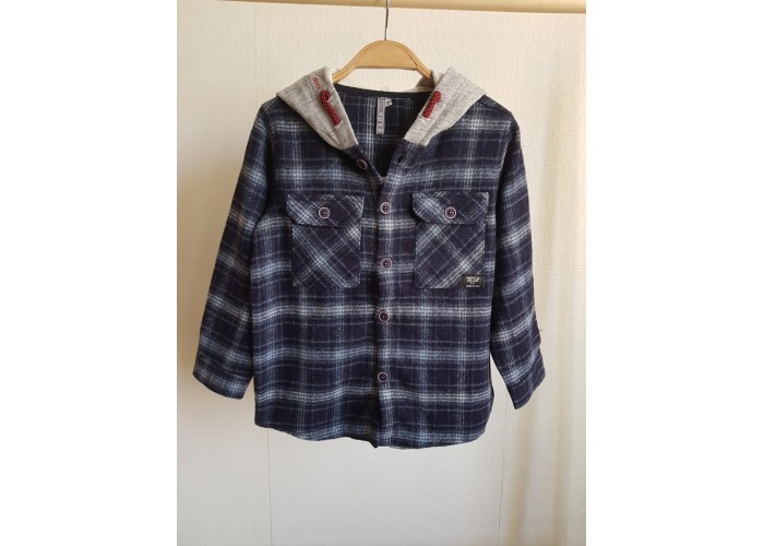 Erkek çocuk; penye kapüşonlu, ekose oduncu gömlek