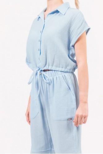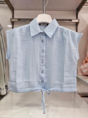 Kız çocuk önden bağlama detaylı müslim kumaş gömlek