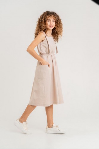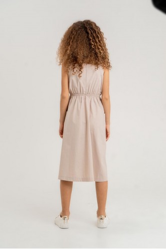 Kız çocuk pamuk poplin, midi boy cepli elbise
