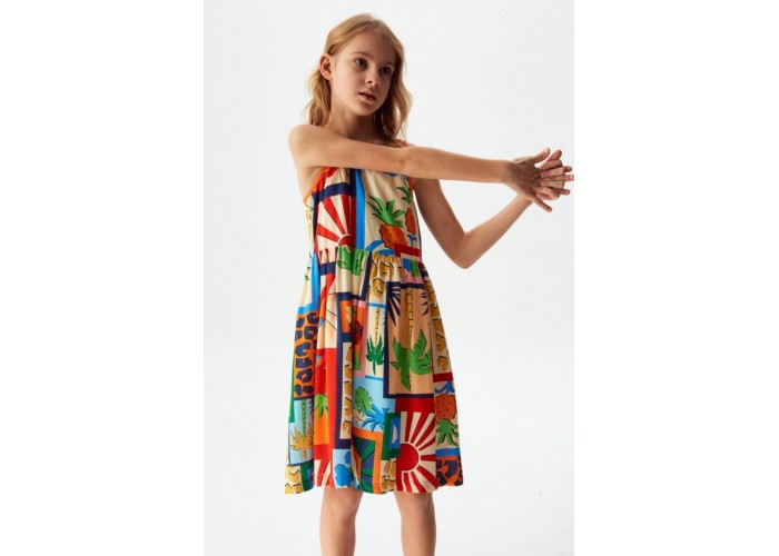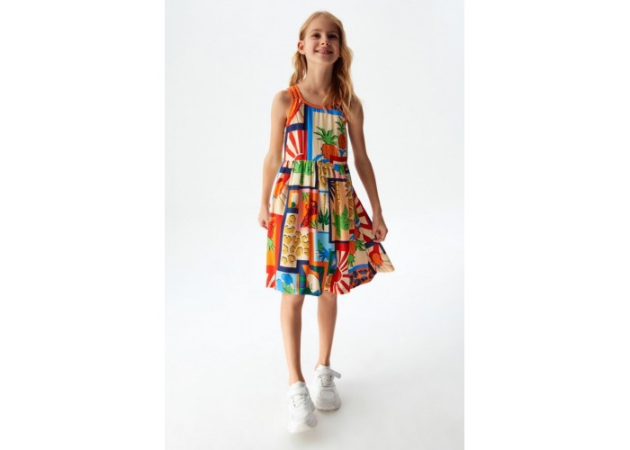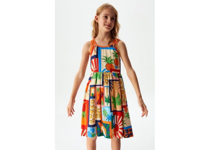 8-14 Yaş Singapur Kız Çocuk Elbise- Turuncu