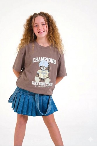 < 8-15 Yaş Kız Çocuk Champion Tshirt - Kahverengi