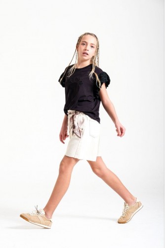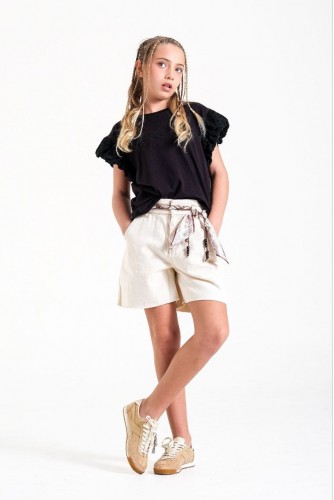 < 8-15 Yaş Kız Çocuk Fular Kemerli Kot Şort - Bej Üzerindeki Değerlendirmeler