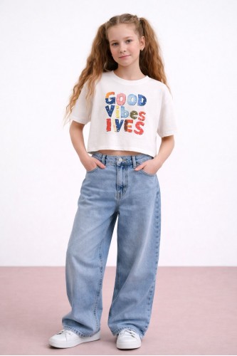 < 8-15 Yaş Kız Çocuk Vibes Tshirt - Beyaz