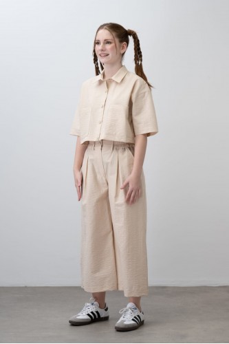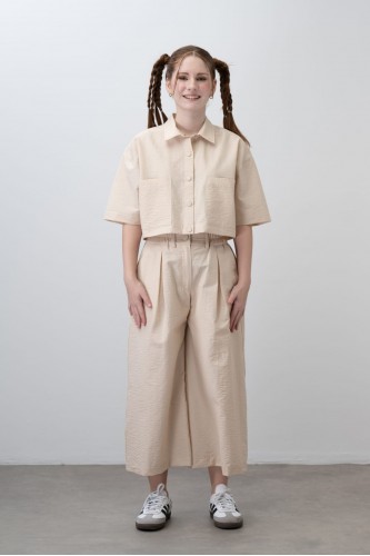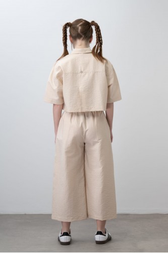 Kız çocuk keten krop gömlek ve palazzo pantolon takım