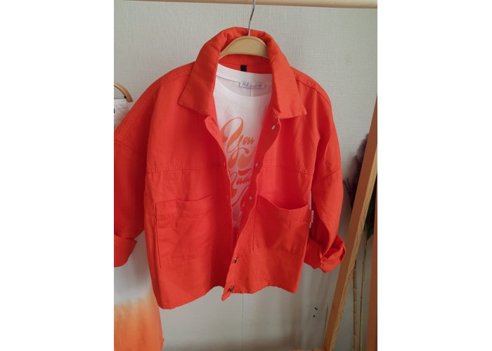 9-15 Yaş Kız Çocuk Pamuk Keten Gömlek/Ceket - Turuncu