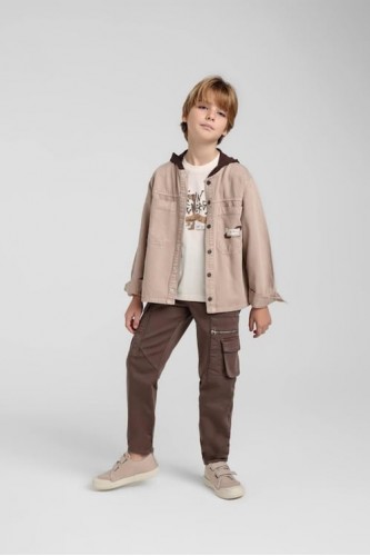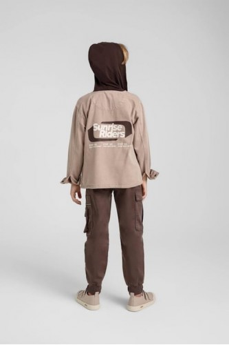 < 4-9 Yaş Erkek Çocuk Kapüşonlu Gömlek - Vizon